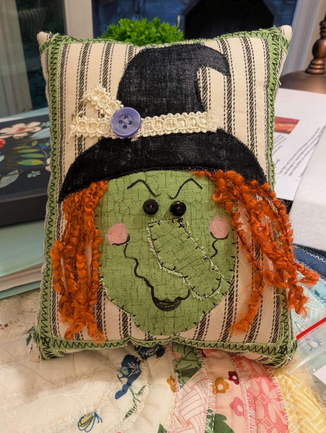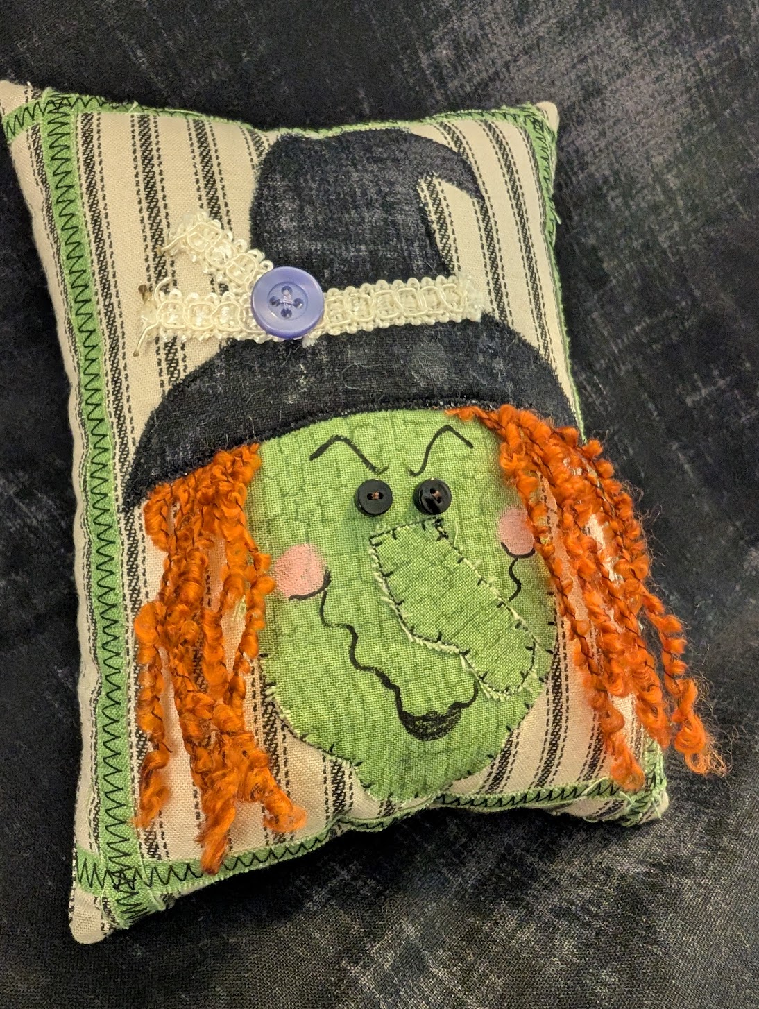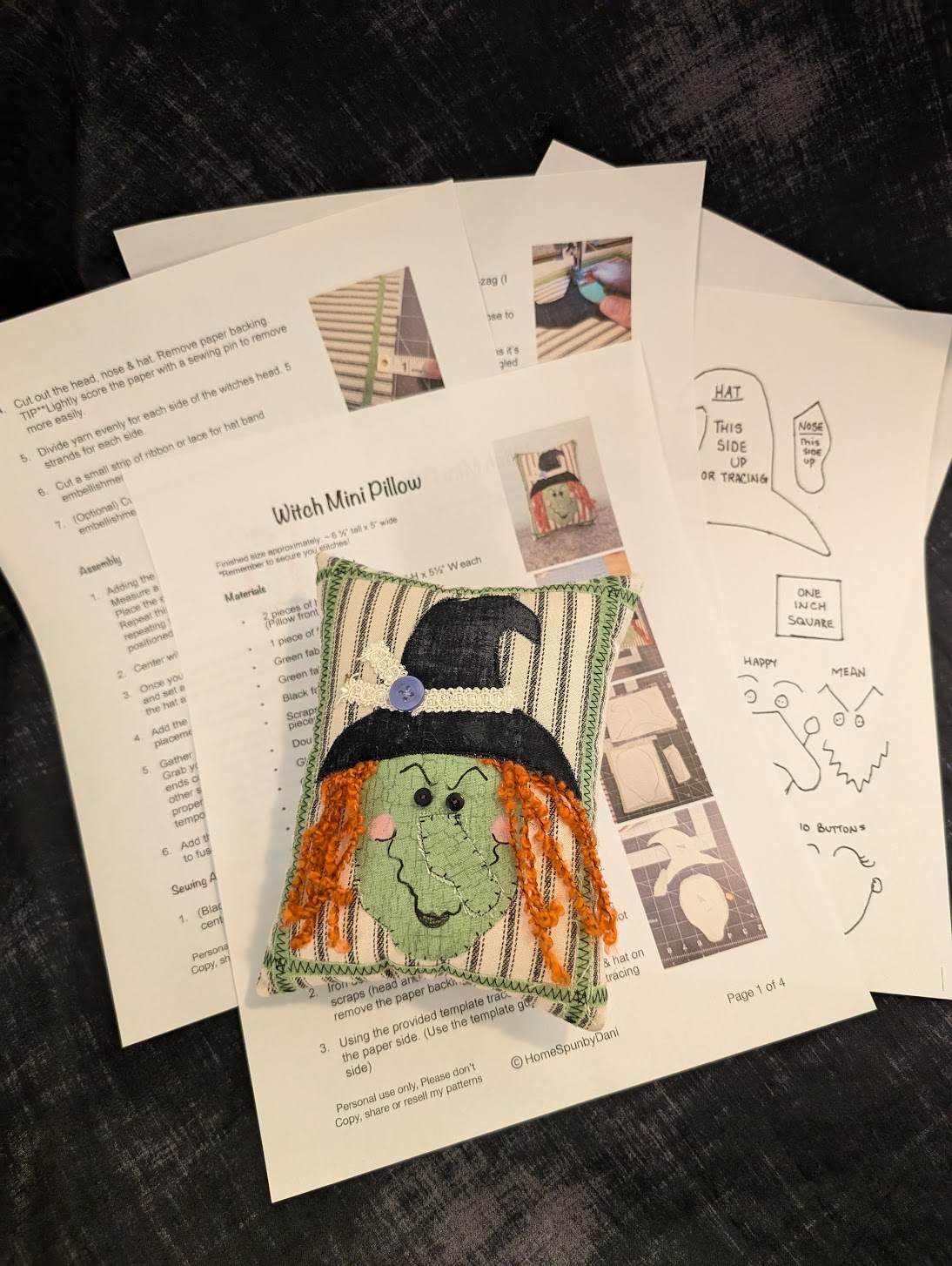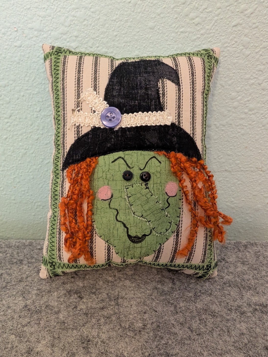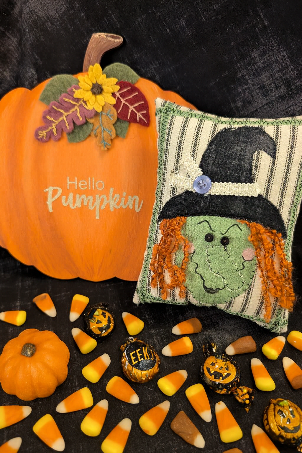 Display your witch pillow on a mantel, tuck it into a basket of autumn décor, add it to a Halloween shelf display, or stitch up a few as gifts for friends.